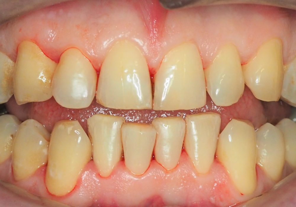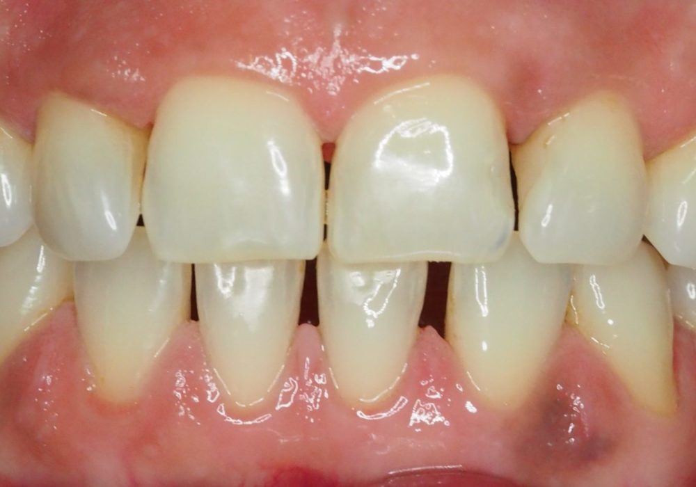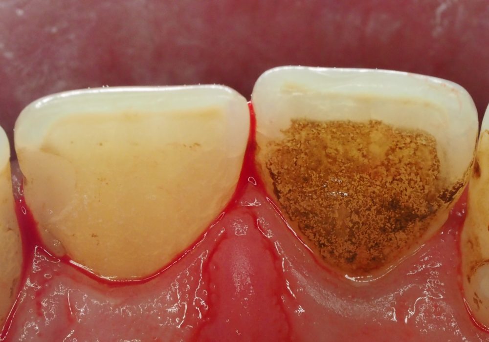 Efekt po piaskowaniu pojedynczego siekacza szczęki u Pacjenta palącego