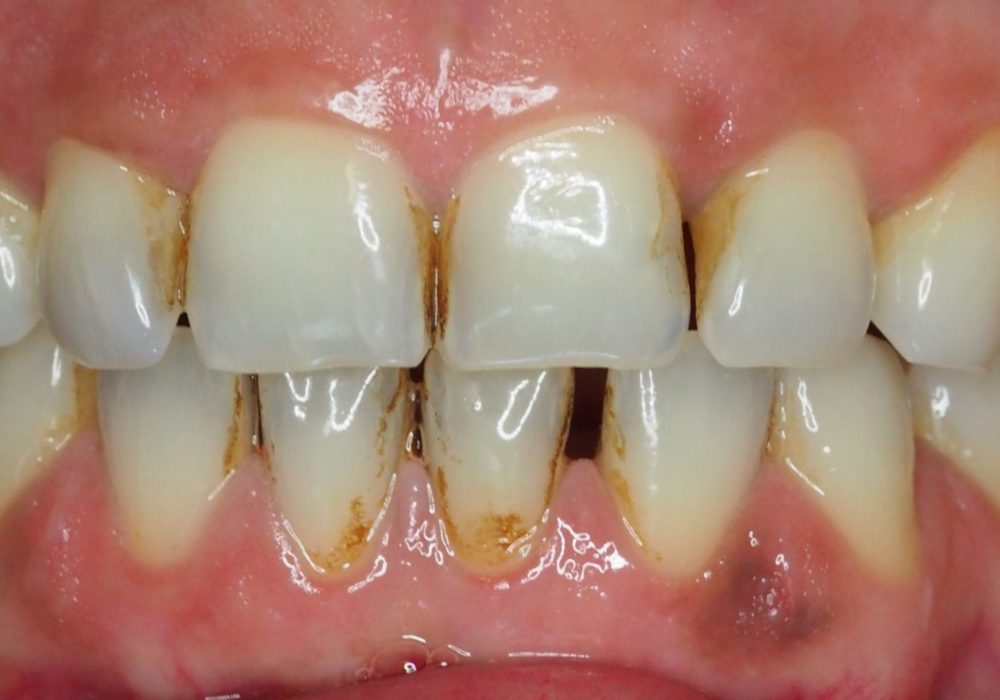 Pacjent zgłosił się z powodu obecności nieestetycznego osadu spowodowanego paleniem papierosów
