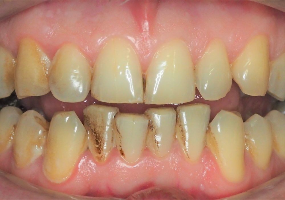 Pacjent zgłosił się celem oczyszczenia zębów z osadu spowodowanego paleniem papierosów